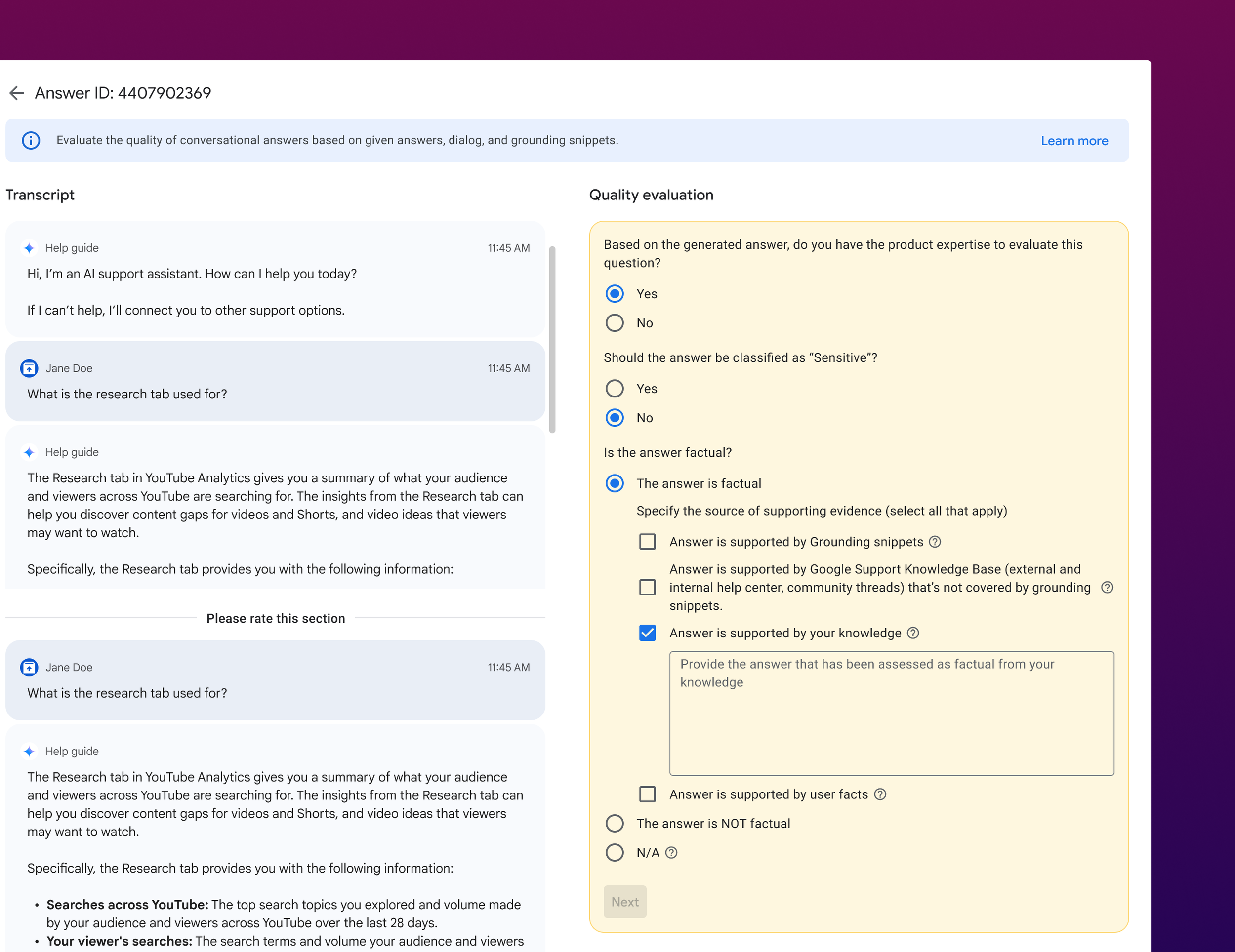 Improve accuracy and velocity of human evaluation tool for Gen AI quality assessment.