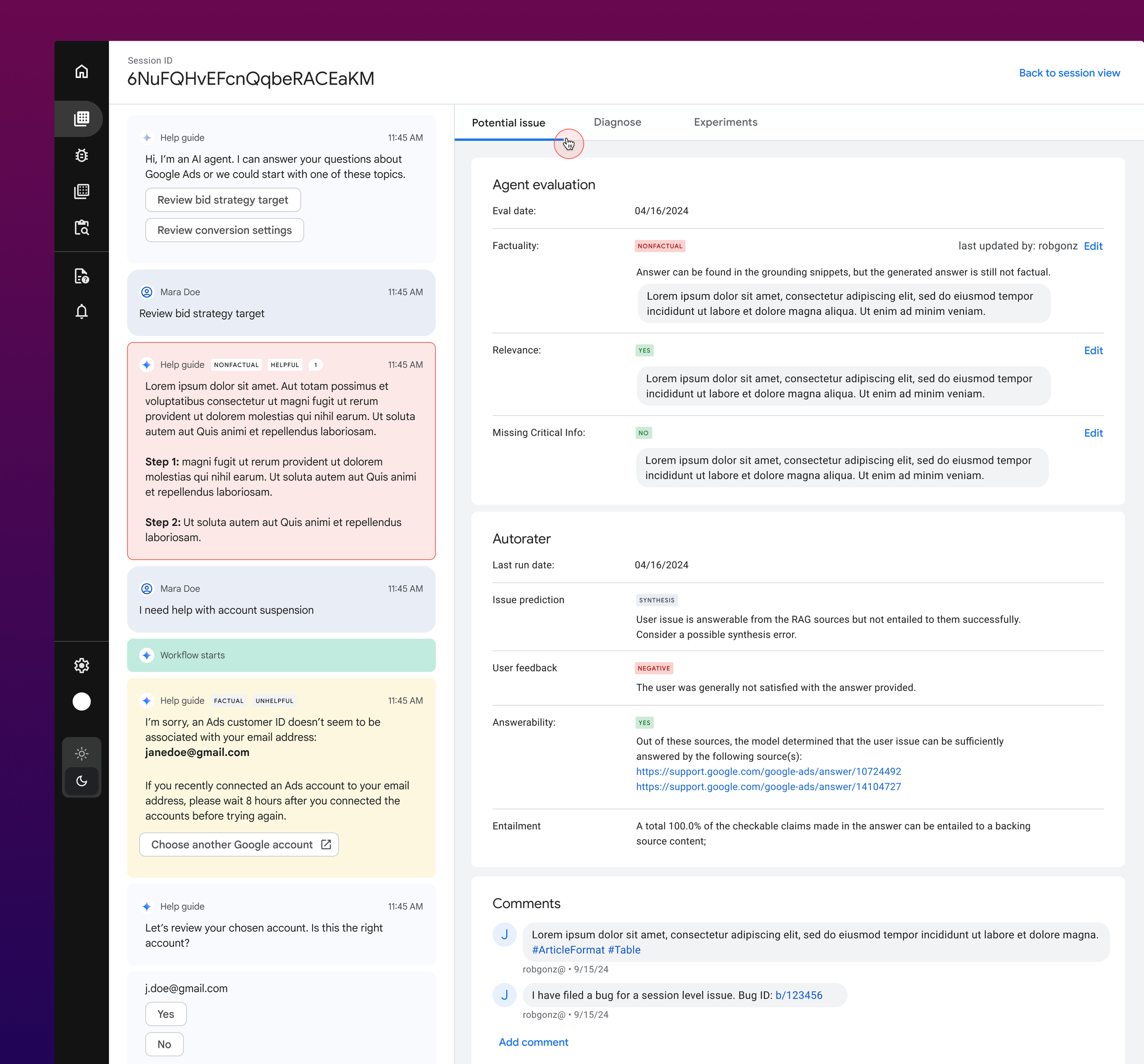 - Comprehensive quality insights: View human and autorater evaluations to quickly assess response quality.